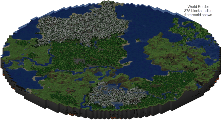 I changed out the PVP test server again and this time published the overhead map. The world border is set to 375450 blocks radius from world spawn. The map was rendered beyond this border, then trimmed into the circular shape you now see; then all chunks were populated so that the arena is fully generated. For the tournament, I will publish 3 maps for the oponents to vote on here.