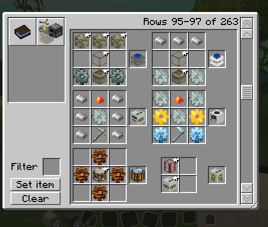 CraftGuide / QuickGuide – hit ‘G’ while in game to see all recipes possible (don’t need to create the craftingguide book.