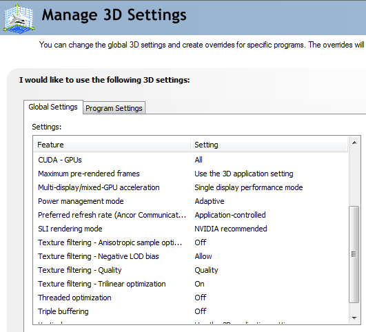 ***** NOTE: You must disable ‘Threaded Optimization’ by setting it to off in your graphics control panel or you will get flashing blocks and it will be annoying. This is from my Nvidia control panel. It may be called ‘OpenGL threading’ in other panels. You can disable it for just minecraft and java.exe, but the preferred setting is to change it globally as I have done in the screenshot below.