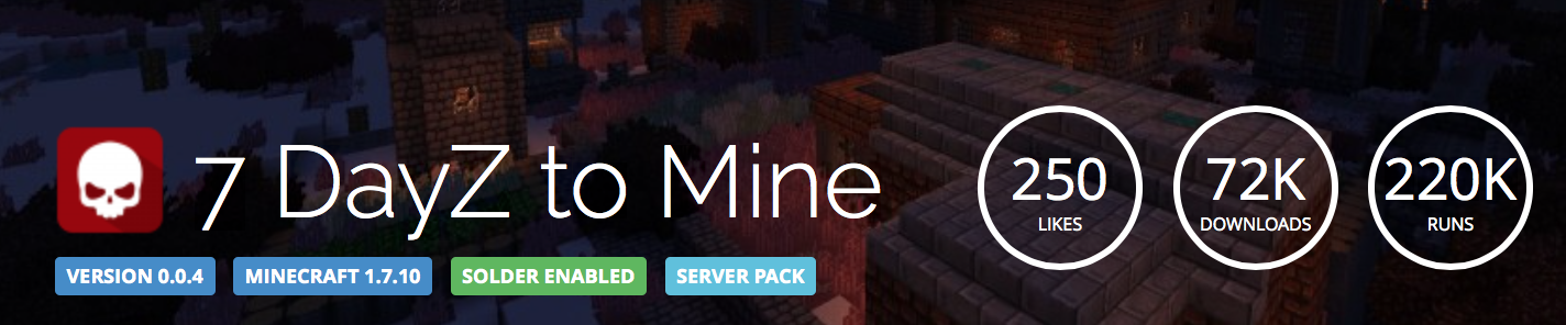My newest Minecraft mod pack officially reached 220k plays today! Version 0.0.5 will be released soon with lots of new content.. in other words, there is much more content to come for 7 DayZ to Mine!