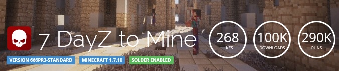 With each update to Seven DayZ to Mine, I am adding more thematic content. PR4 will be released the weekend of December 11th and has many new encounters, more chest with loot weighted for more guns and ammo, fixes to existing ruins templates and more. Also Seven DayZ to Mine reached 100k downloads today and almost 300k runs! Get Seven DayZ to Mine on Technic!